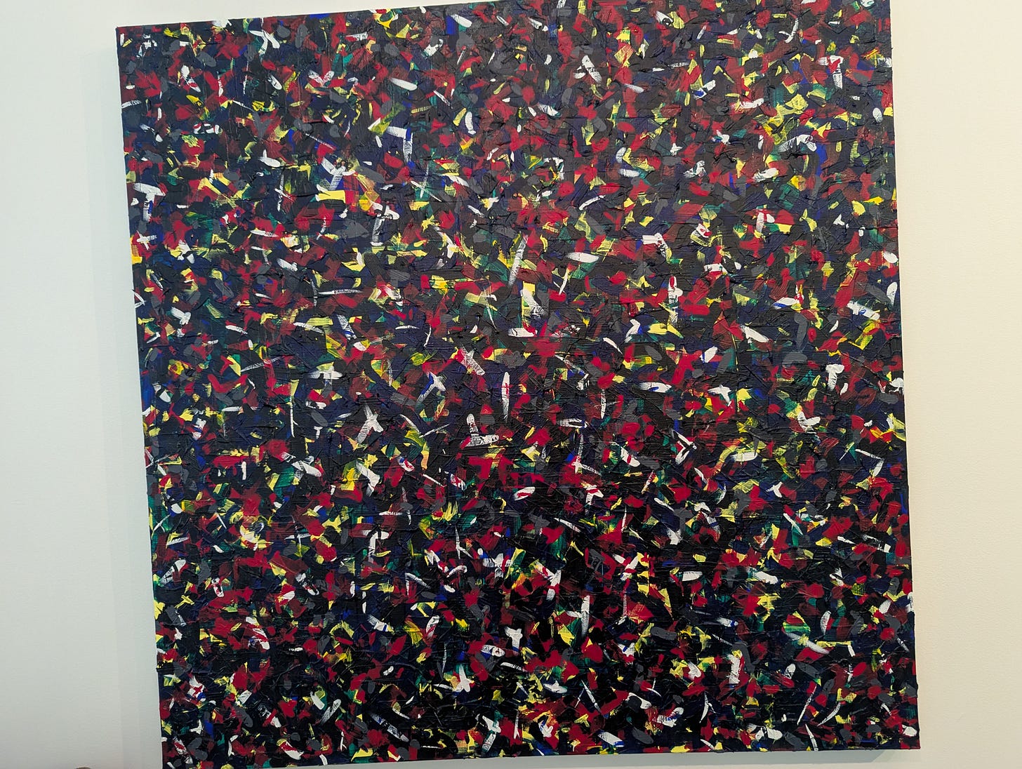 Alrighty then, that wasn't too difficult. Among the things I do in my spare time, and something I can accomplish whilst drinking and / or drunk. I started working on this in the spring of 2023, and finally finished it around the end of 2024. I know it looks like just a bunch of random lines, but there are layers upon layers of brush strokes underneath what you actually see. (Maybe even a hundred individual layers) You can actually FEEL the texture with your bare hands, and there's “mystery” in what lies beneath, unseen…